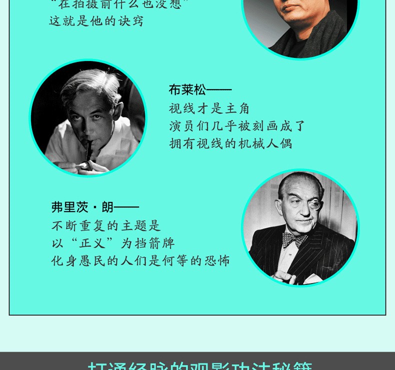 鹽田老師精選了歐美中日多部經典影片的華彩段落,截取名作名場面的靜幀畫面,用類似拉片的方式,從演員的臉、視線和表情、動線和動作安排等方面進行評述,讀取導演的調度意圖,破解場景背後人物關係、情感邏輯的“暗碼”,將導演和演員之間互相依賴、彼此成就的關係一一道來,進而揭開影史杰作抓住人心的奧妙所在。