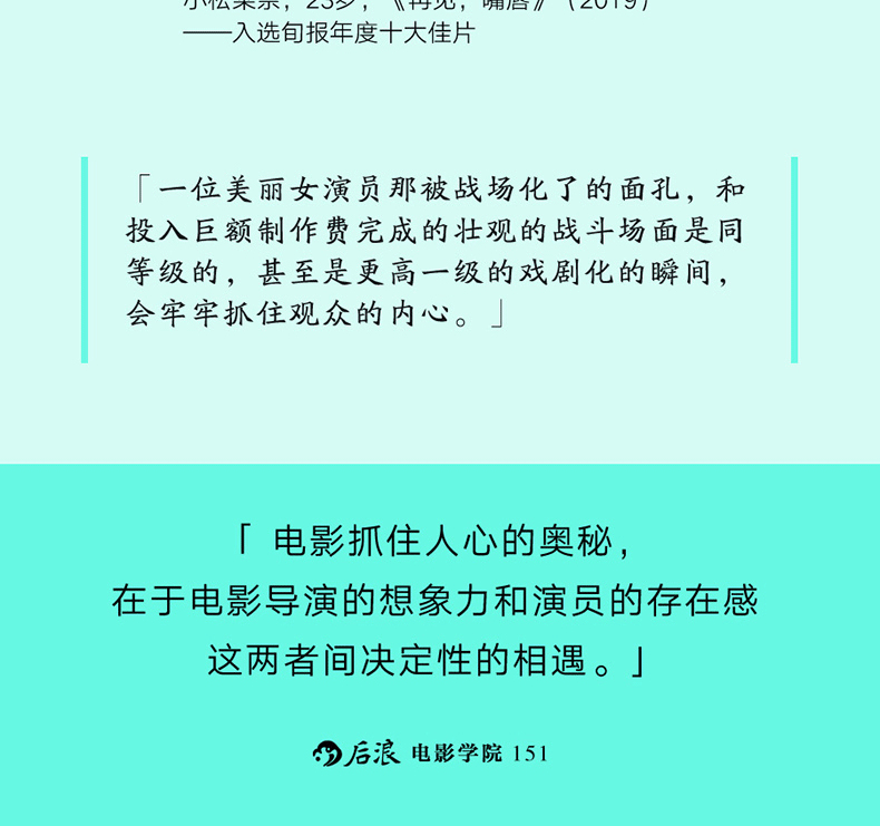 日本導演鹽田明彥,是“立教一派”的代表人物之一,作品曾多次入選《電影旬報》年度十佳,職業生涯中曾挖掘、合作過宮崎葵、蒼井優、長澤雅美、柴崎幸、竹內結子、小松菜奈等諸多女星,她們在鹽田的電影中都發揮出了別樣的魅力。這樣一位挑臉、拍臉眼光極準的導演有著怎樣的“看臉”說·作者漫遊影史細數“顏控”大師,亦結合自身創作經驗進行論述,從希區柯克對臉的物化迷戀,到布萊鬆的視線調度,再到小津安二郎讓臉抽離表情……電影以演員的面部作為舞台,挑選、塑造一張有故事的臉,正是在大銀幕上吸引觀眾目光的強有力手段。