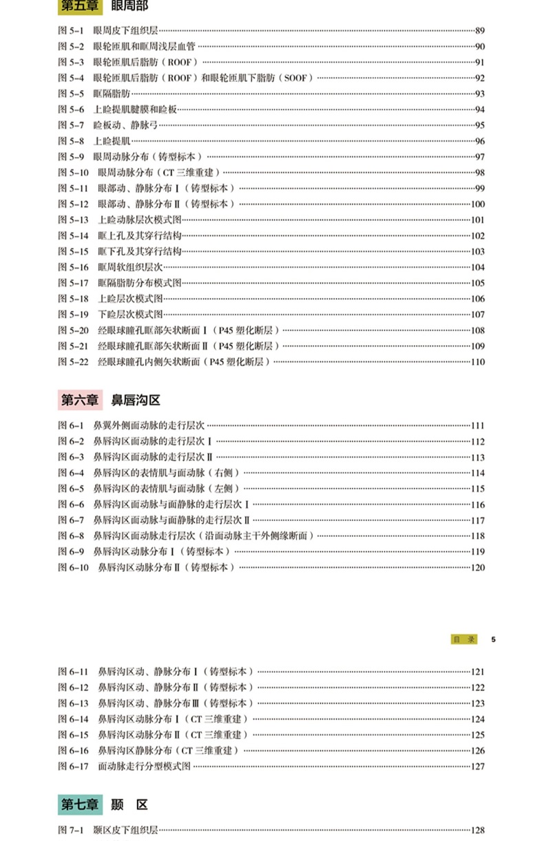 《面部精準注射解剖圖譜》是一本內容詳盡、標本層次結構清晰的實物圖譜。本書首先通過新鮮標本的動、靜脈灌注後,根據微注射的臨床需求在面部分部位進行了逐層解剖,拍攝了大量視角獨特的實用的實物照片,並且本書還利用血管鑄型技術、三維重建技術等獲得了面部動脈和靜脈分佈的全貌。 P45斷層塑化技術是的斷層標本製作技術,本書應用該技術清晰的顯示了面部的層次,尤其是完整的展示了SMAS層。同時本書繪製了精美的標本示意圖,使晦澀難懂的部分更加清晰。該書從籌備到完稿歷時1年半,*終精選照片、圖片240餘幅,圖譜內容詳實、圖片清晰、圖解充分,編排細緻,力求全面呈現面部的解剖層次和血管分佈,從而為面部微注射技術有效地提供解剖基礎。希望本書能夠成為廣大醫學生、醫學美容教育工作者和醫學美容臨床醫生的得力助手。