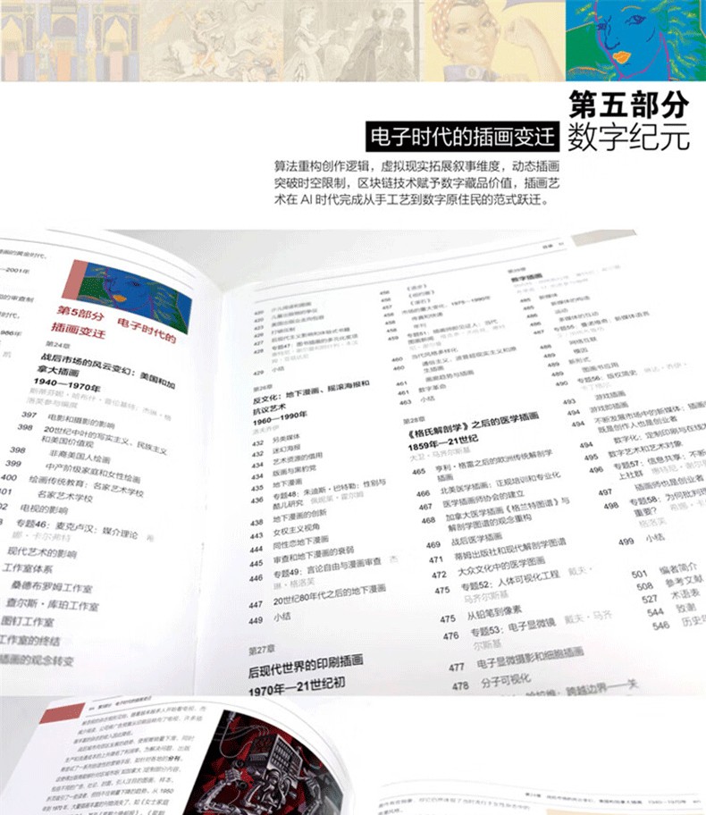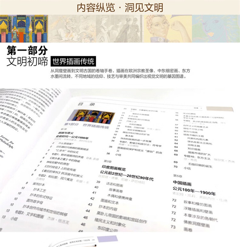 本書以全球視野為經,以歷史脈絡為緯,系統梳理插畫從遠古岩畫到數位藝術的演進歷程,透過五大部分:插畫起源與地域特色、文藝復興後的知識傳播、大眾媒體時代的商業應用、20世紀的多元繁榮、數位時代的全球融合,全景展現世界各國的插畫傳統與發展軌跡,既是百科全書式的插畫通史,也是插畫從業人員、研究者不可或缺的案頭工具書。