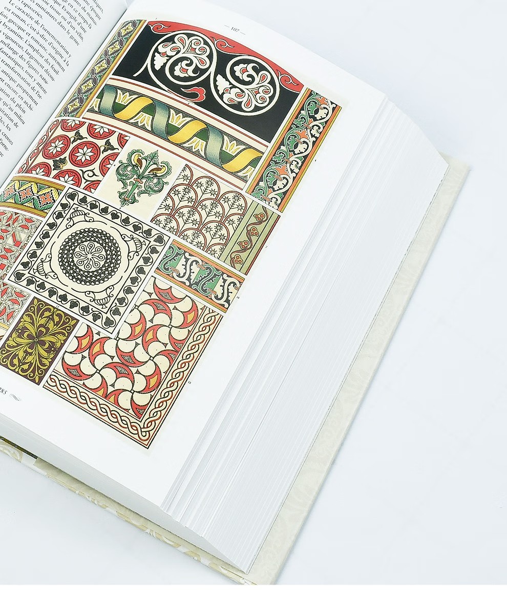 透過這本歷史上最優雅的圖案和裝飾設計的概要,探索裝飾思想的世界。 Racinet的《裝飾》彩色卷I 和II 和奧古斯特·杜邦-奧伯維爾的《組織裝飾》提供了一本內容豐富的資料書,內容涵蓋珠寶、瓷磚、彩色玻璃、彩繪手稿、紡織品和陶瓷裝飾品。