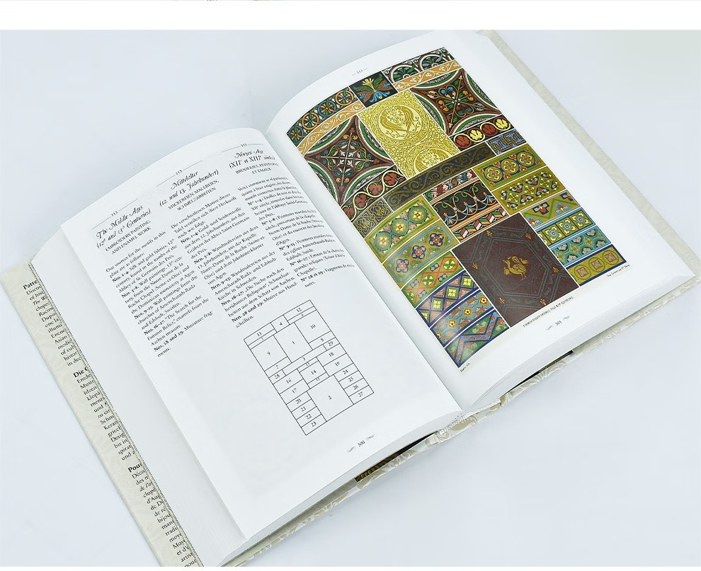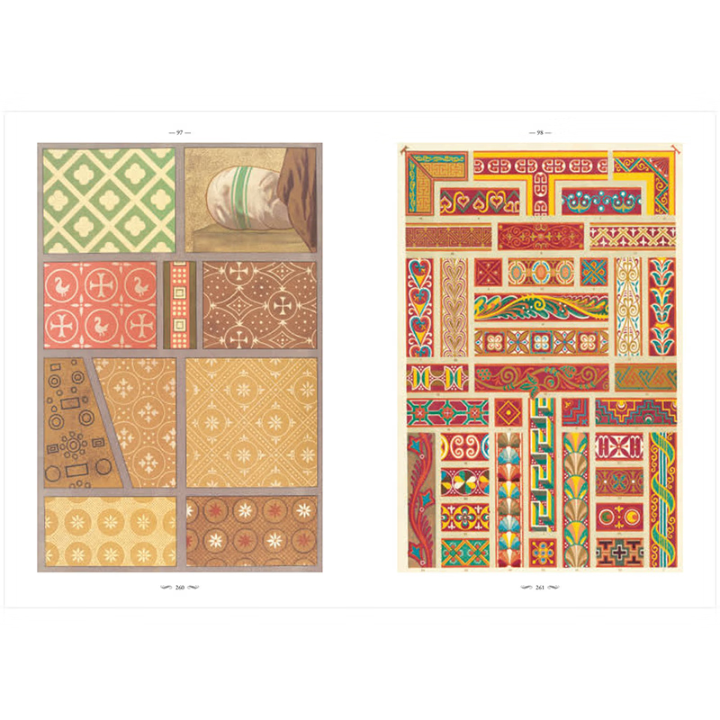 這部文化和美學彙編涵蓋了從中世紀到19 世紀的古典、埃及、希臘、羅馬、伊特魯裡亞、亞洲和中東以及歐洲設計,為藝術家、歷史學家、設計師和製版師提供了主要參考,任何從事裝飾設計和影響的人。