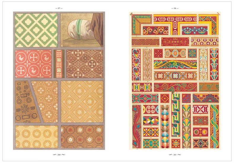 十九世紀:奧古斯特·拉西內 (Auguste Racinet) 的《裝飾多色》第一捲和第二卷以及奧古斯特·杜邦 (Auguste Dupont)