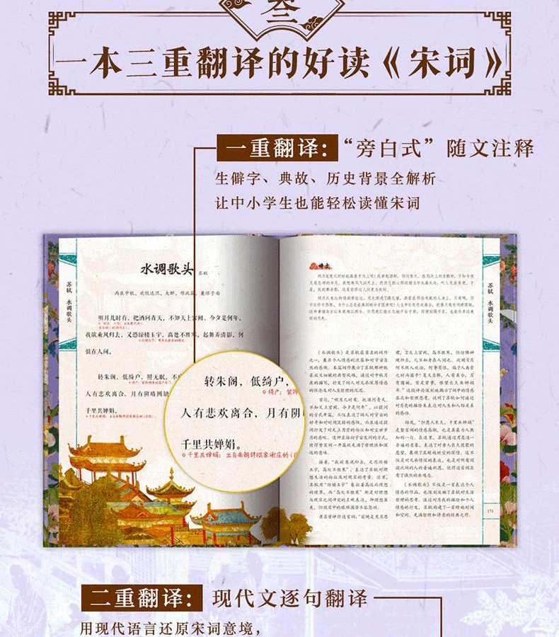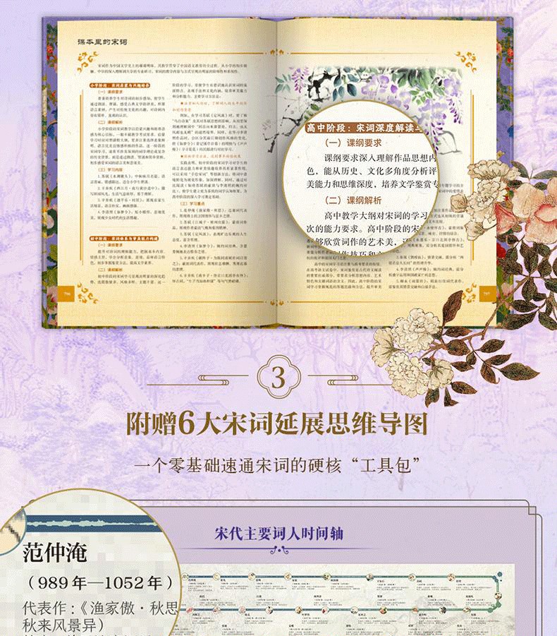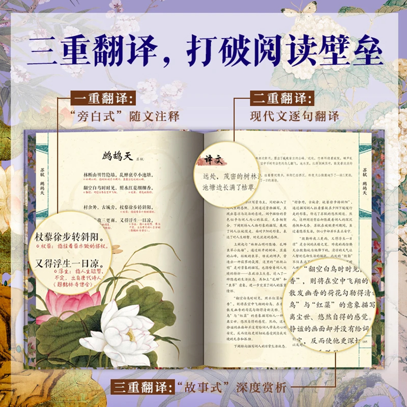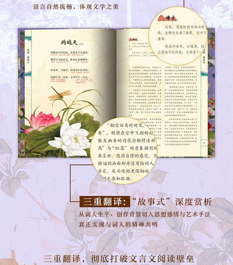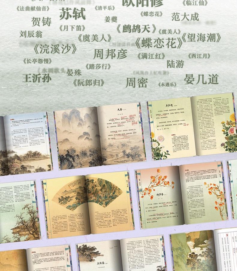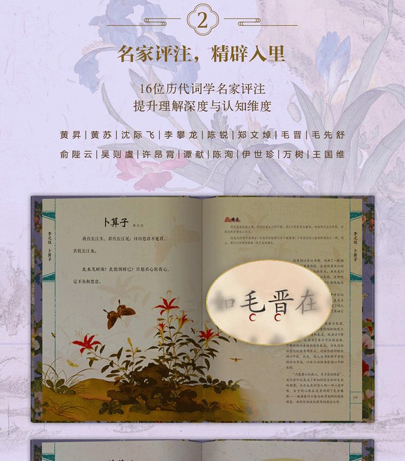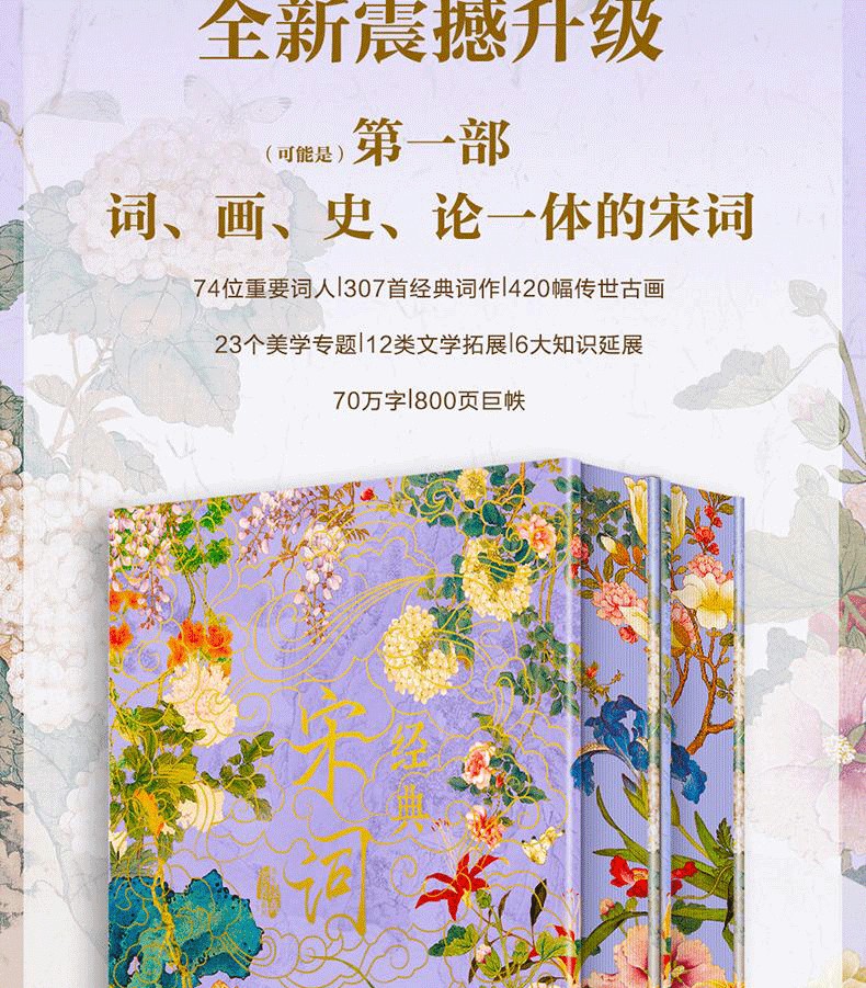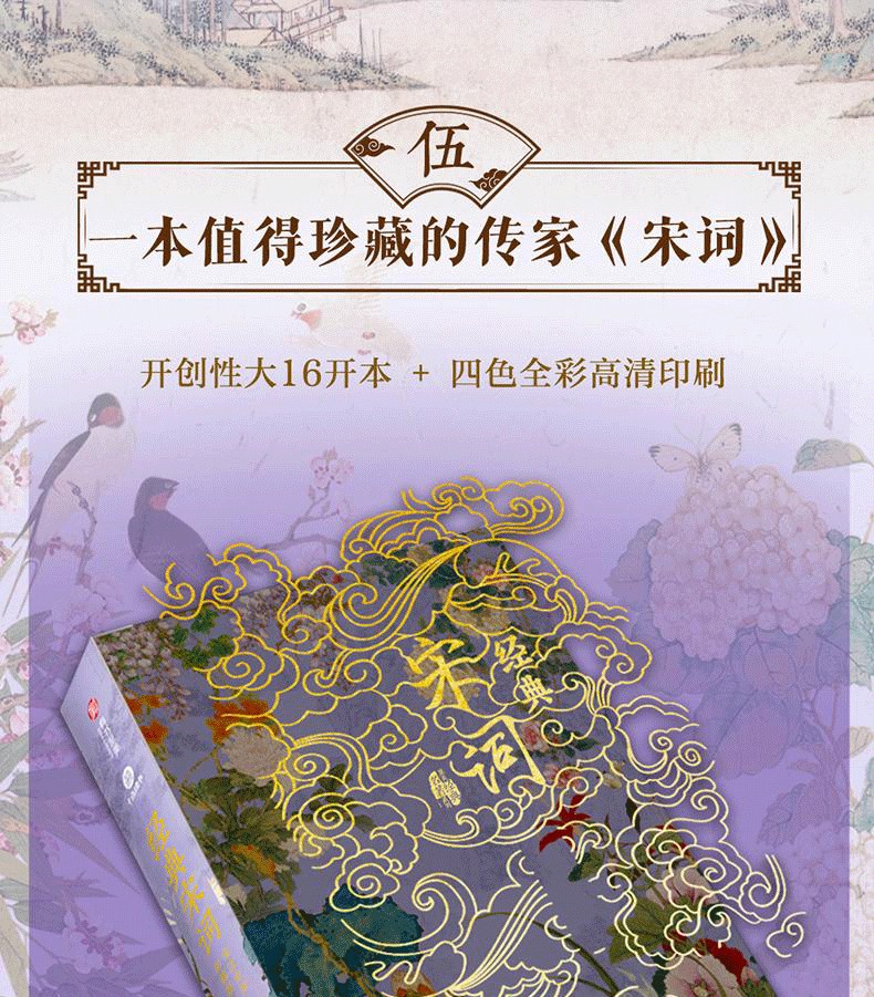 《經典宋詞》全註全譯全彩(全2冊) 精裝16開 三面刷邊 全書共800頁 重3KG隨書附贈 宋代繪畫集萃+如夢令藏書票+宋詞延展思維導圖