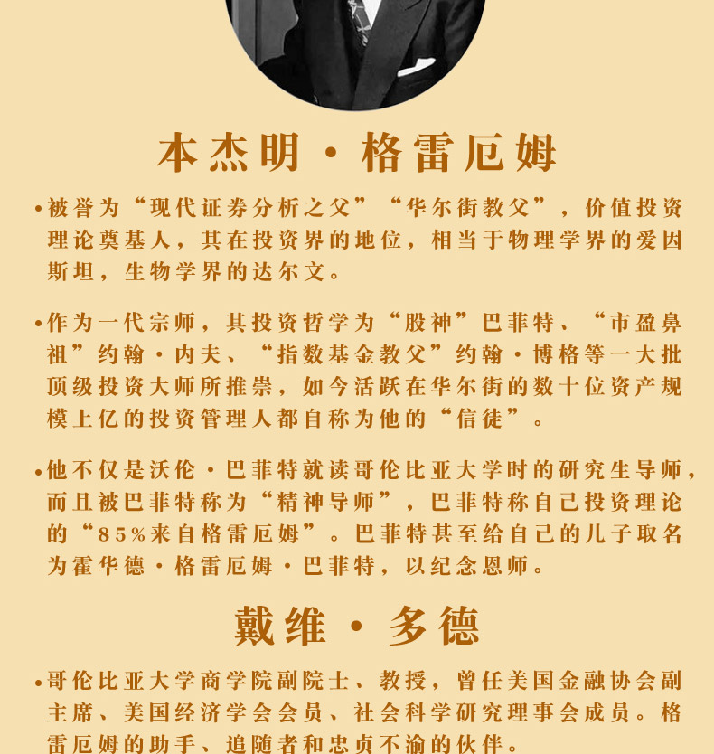 一代投資宗師格雷厄姆在經歷了四次金融危機、三次經濟蕭條後推出的《證券分析》一書,經久不衰;尤其是巨新版本中多位華爾街知名金融大家針對全球化投資環境提出的新理論,在當今金融大背景下,更是值得我們深思。