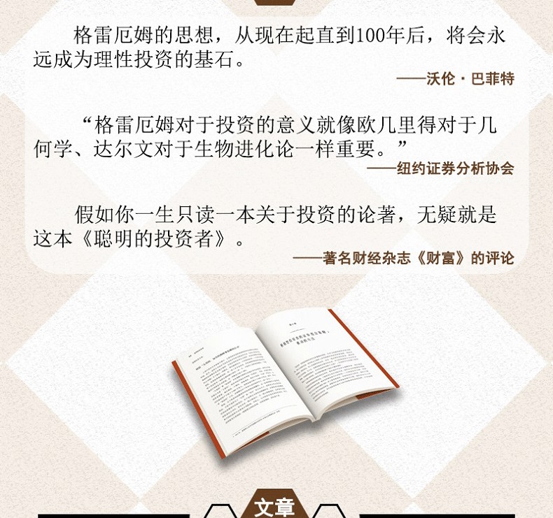 證券類的書籍,隨著市場的發展,可以說是汗牛充棟,但是讀後能被記住的能有幾本?每年證券類的暢銷書籍也有很多,可是讀後滿足了好奇心而能夠被重溫的能有幾本?這就是暢銷書,只是一時喧囂。但是,經典類書籍就不一樣,也許你不常閱讀,但是當你要了解一些重要思想和概念的時候,首先想到的就是它。它不會隨歲月的更迭和變遷而失去它的價值。 《證券分析》就是這樣一本書,它是經典而不是暢銷書;它會影響幾代人而不是只影響幾年;它不會熱鬧一時,曇花一現,而會恆久留香。