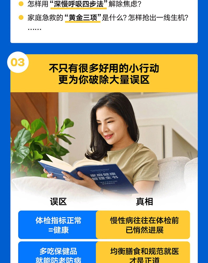 全覆蓋:從洗手、刷牙到飲食、睡眠,從孩子成長到父母養老,從慢病預防到急症應對-涵蓋全年齡層、全生活場景的健康需求。