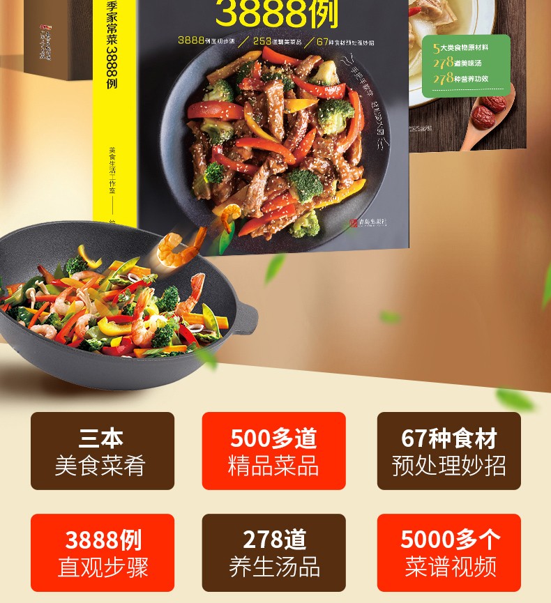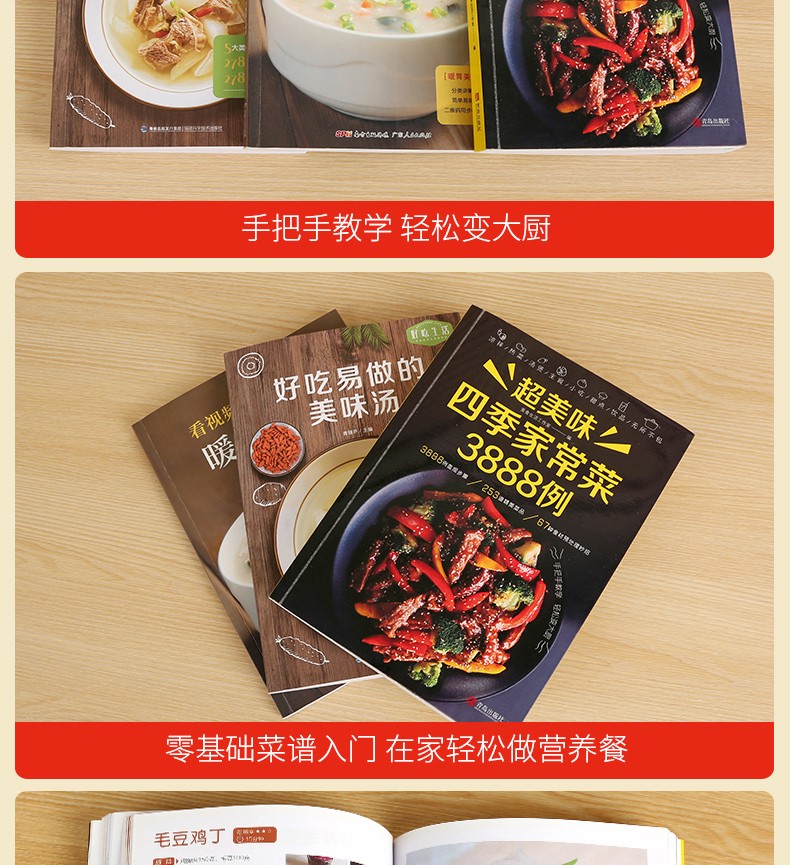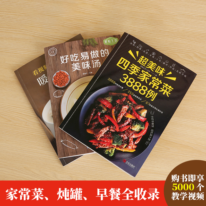 【全彩圖解 附贈5000道美食視頻教程】超美味四季家常菜3888例+暖胃早餐+好吃易做的美味湯 3冊